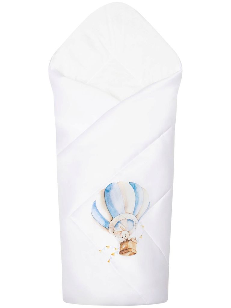 Зимний конверт-одеяло на выписку "Зайка на воздушном шаре" (белое, принт без кружева) без пледаВопросы по товару
