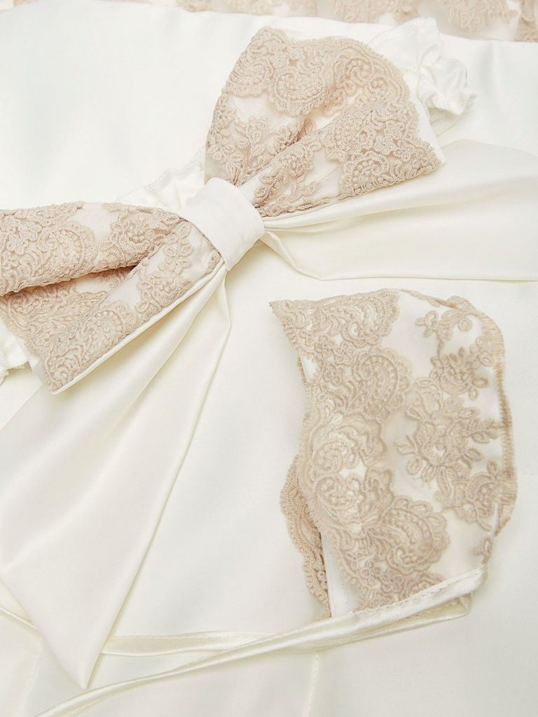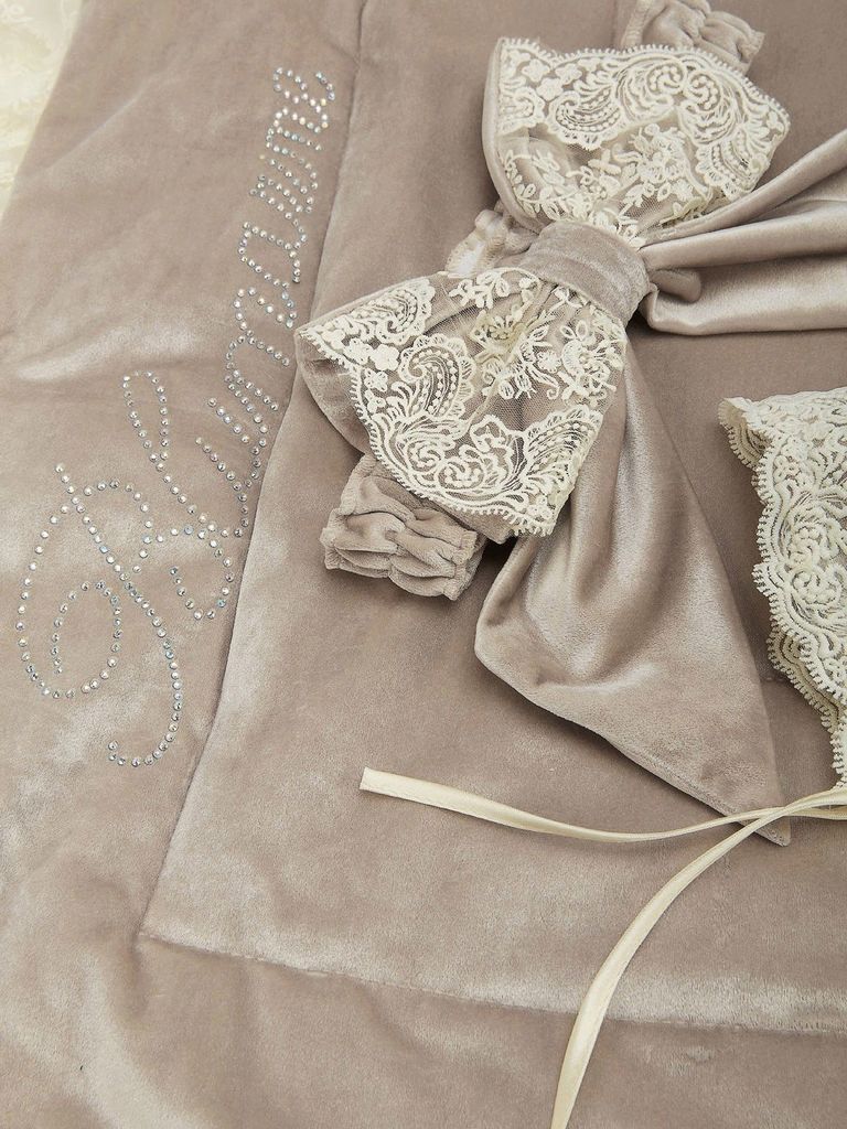 Зимний Конверт-одеяло на выписку "Блюмарим" (бежевый с молочным кружевом, стразами и бантом) без пледаВопросы по товару
