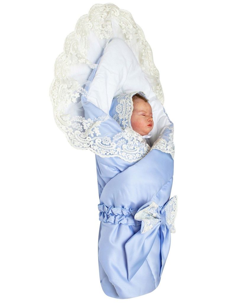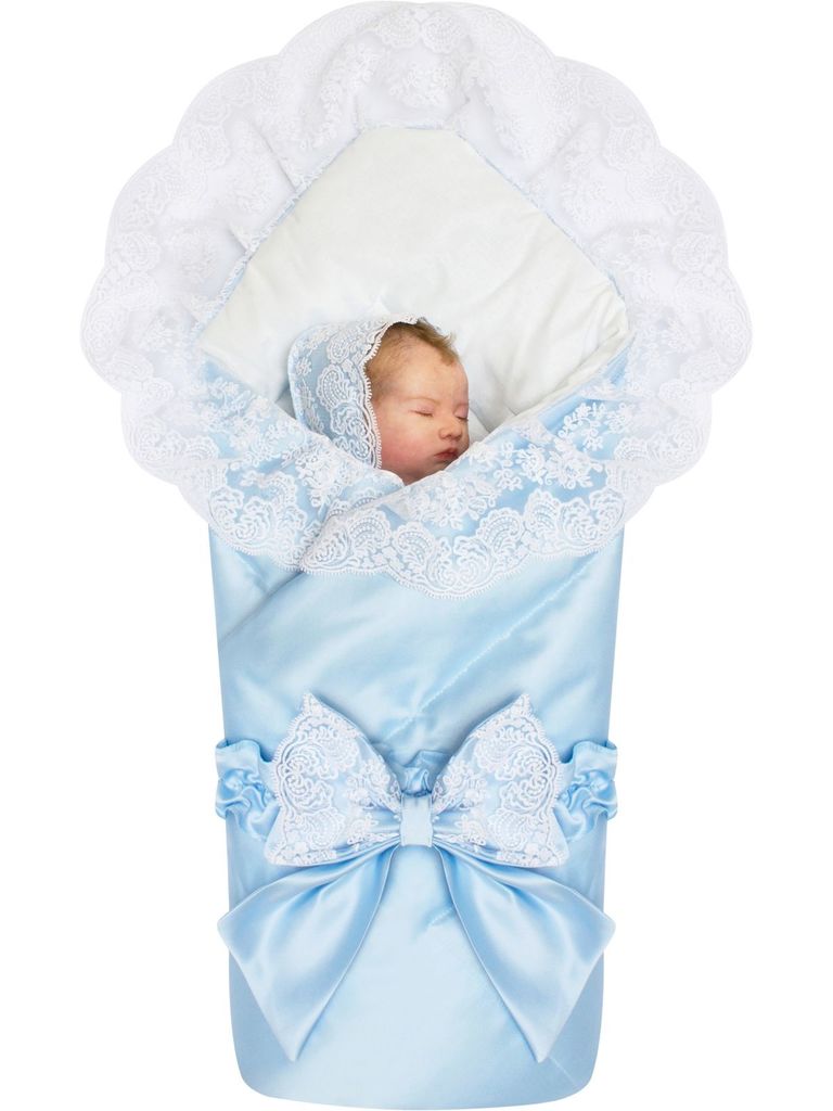 Зимний конверт-одеяло на выписку "Венеция" (голубой с белым кружевом) без пледаВопросы по товару
