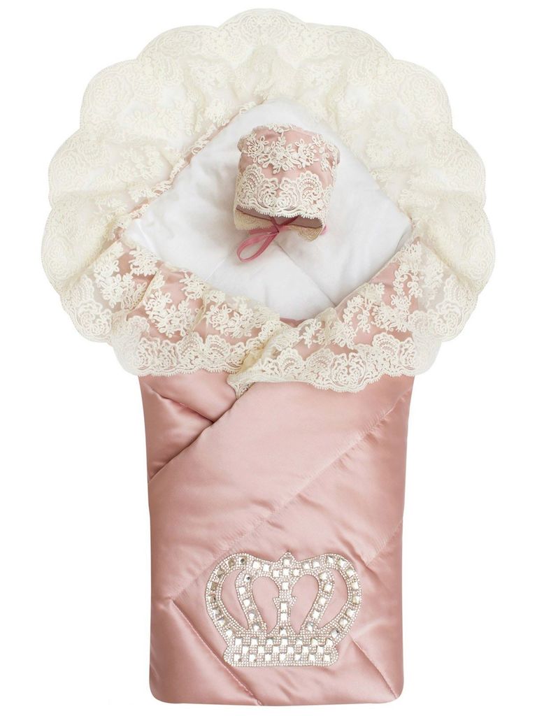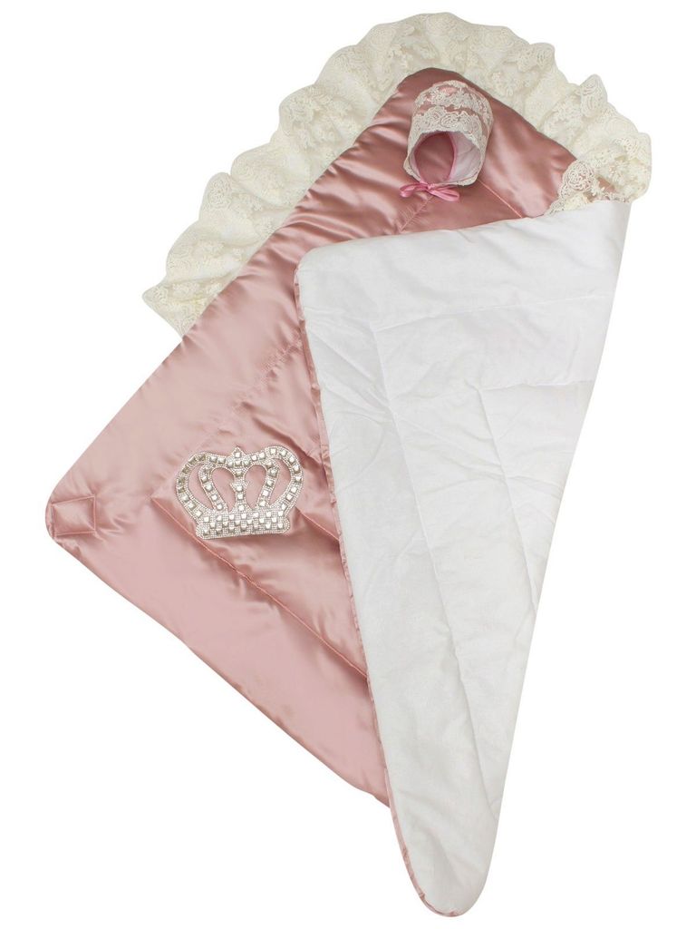 Зимний Конверт-одеяло на выписку "Императорский" (пыльная роза с молочным кружевом и большой короной на липучке) без пледаВопросы по товару