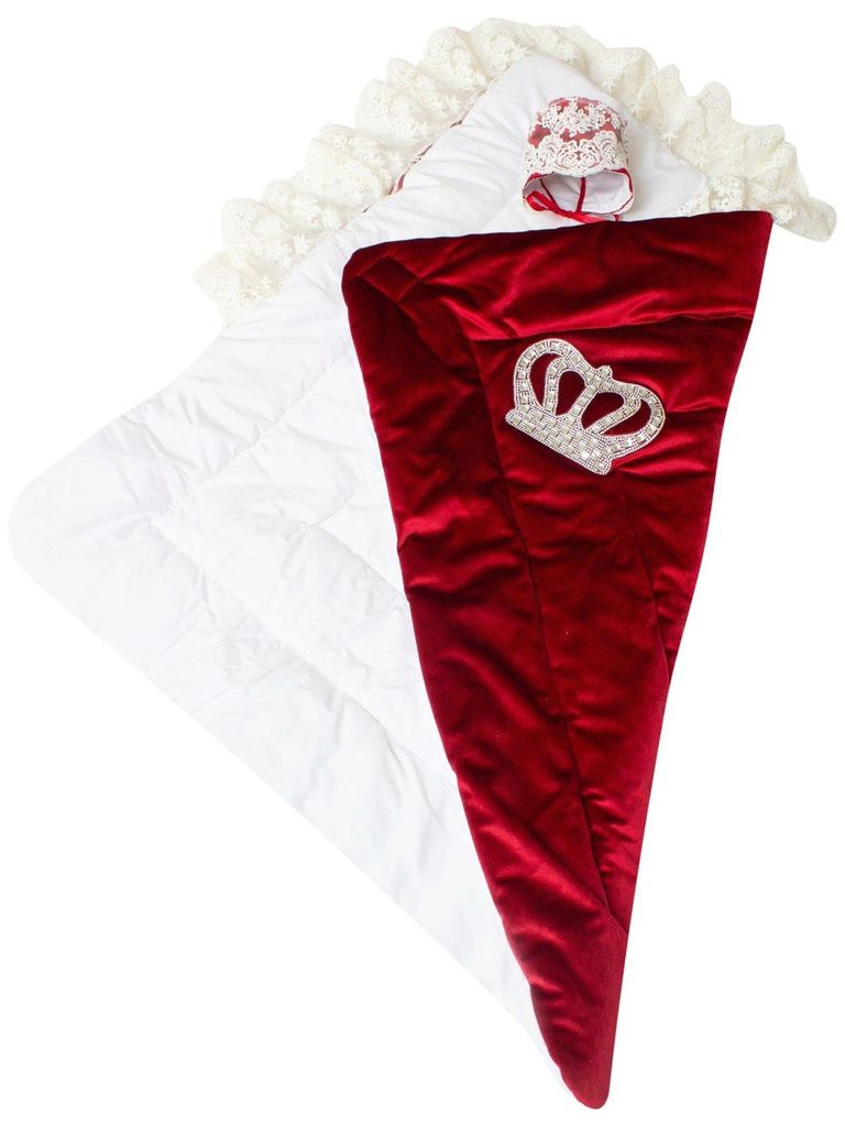Зимний Конверт-одеяло на выписку "Императорский" (Бургундия с молочным кружевом и большой короной на липучке) без пледаВопросы по товару