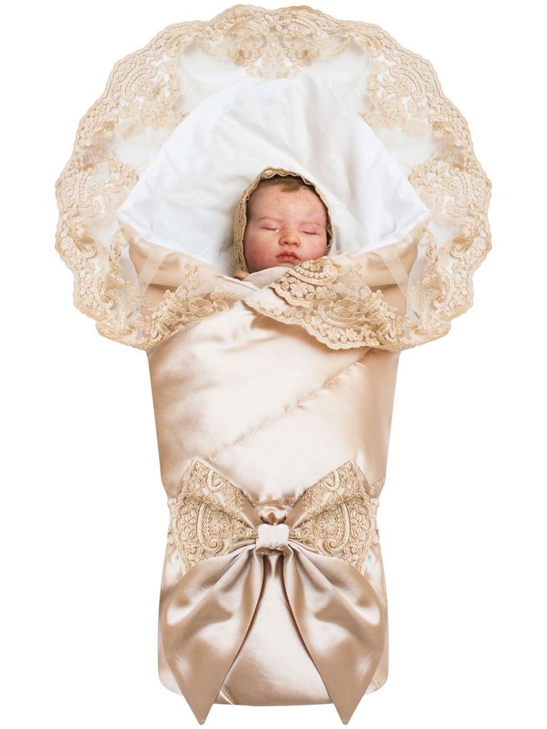 Зимний конверт-одеяло на выписку "Венеция" атлас (золотой с золотым кружевом) без пледаВопросы по товару
