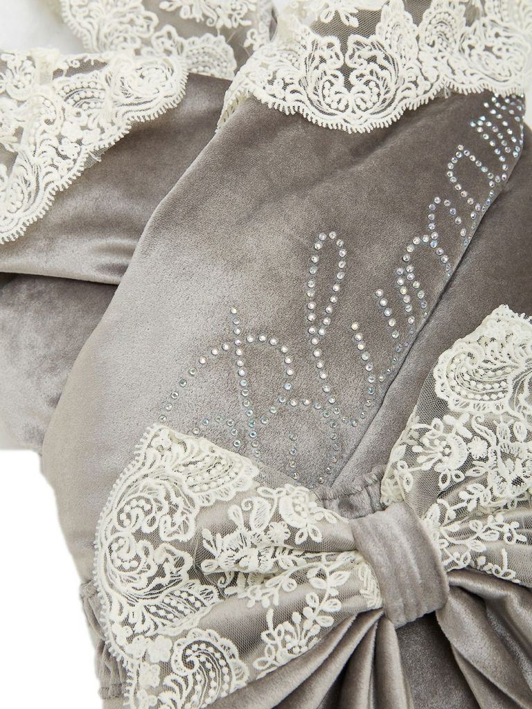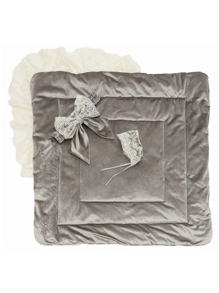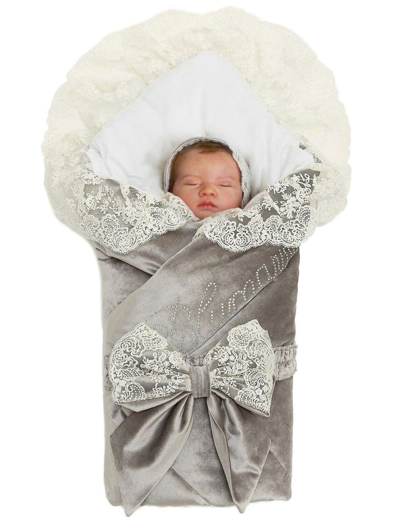 Зимний Конверт-одеяло на выписку "Блюмарим" (серый с молочным кружевом, стразами и бантом) без пледаВопросы по товару
