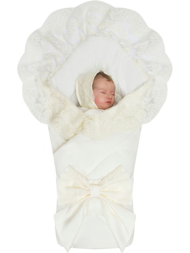 Зимний конверт-одеяло на выписку "Венеция" (молочный с молочным кружевом) без пледаВопросы по товару