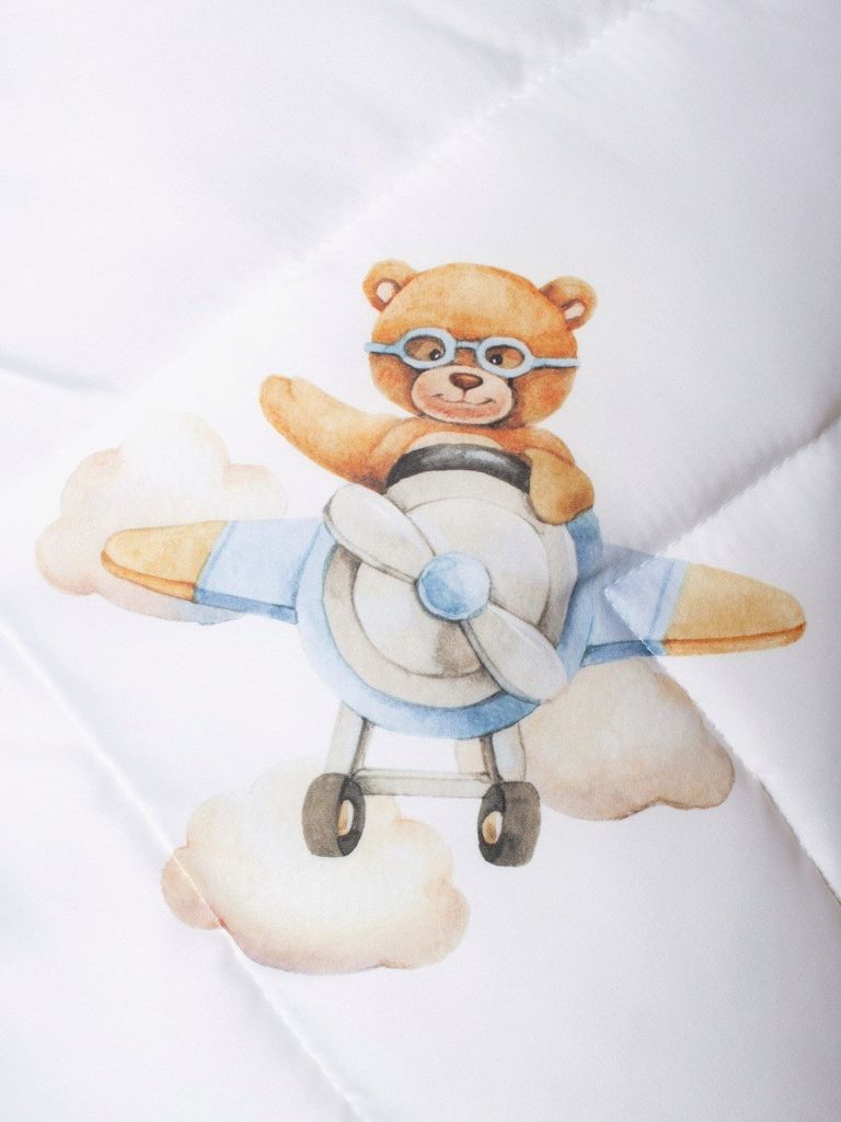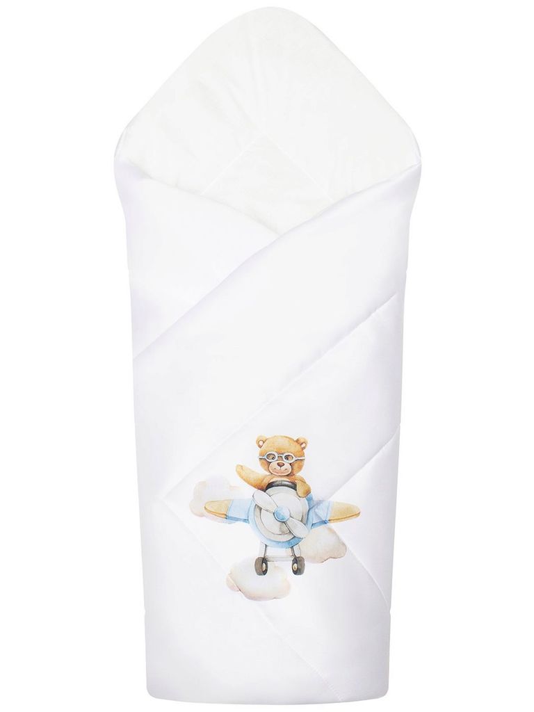 Зимний конверт-одеяло на выписку "Мишка пилот" (белое, принт без кружева) без пледаВопросы по товару