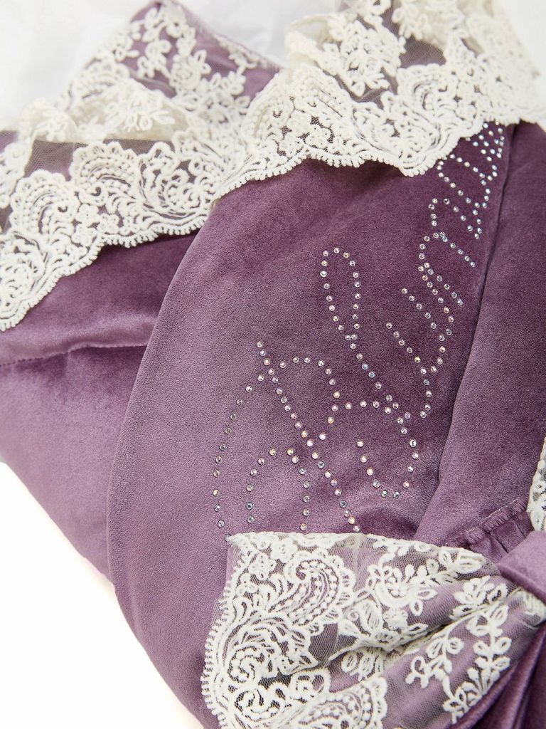 Зимний Конверт-одеяло на выписку "Блюмарим" (пыльная роза с молочным кружевом, стразами и бантом) без пледаВопросы по товару