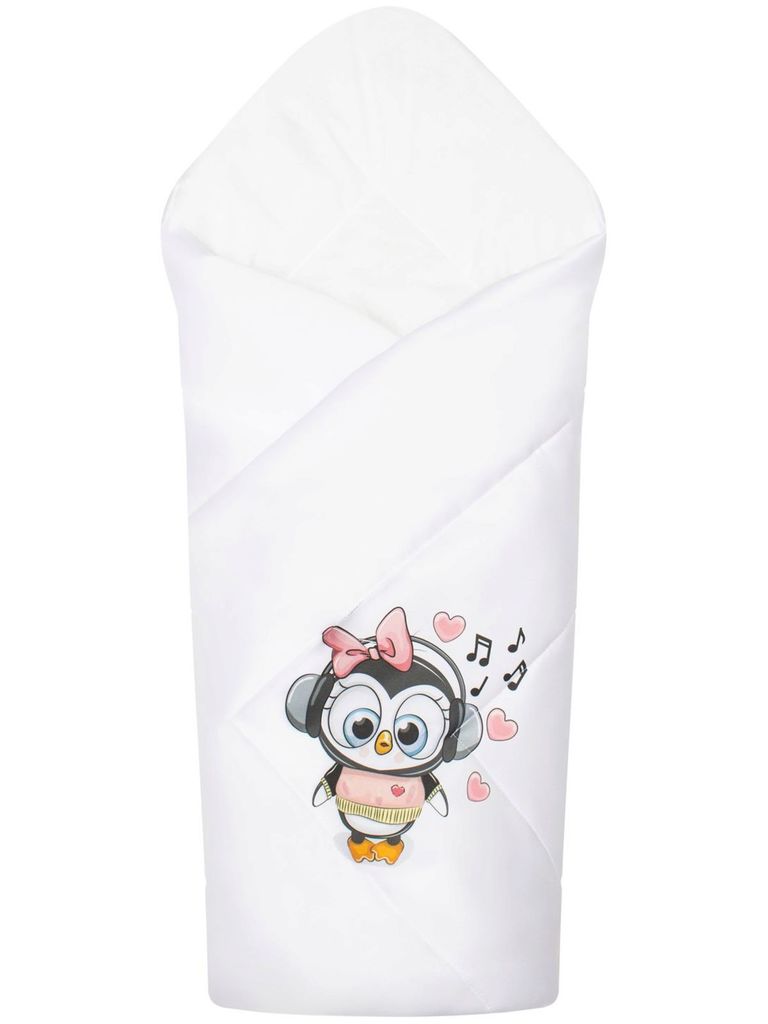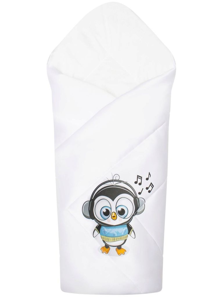 Зимний конверт-одеяло на выписку "Пингвинёнок" (белое, принт без кружева) без пледаВопросы по товару