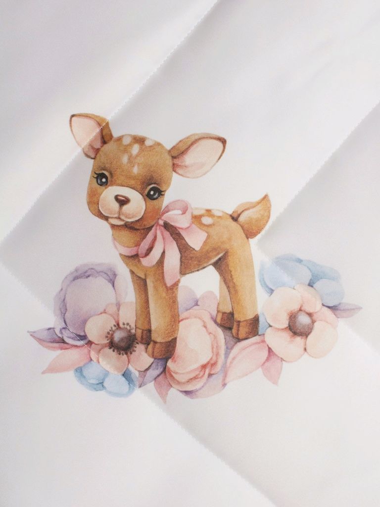 Зимний конверт-одеяло на выписку "Оленёнок" (белое, принт без кружева) без пледаВопросы по товару