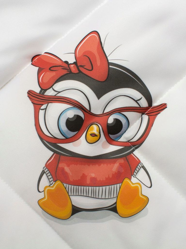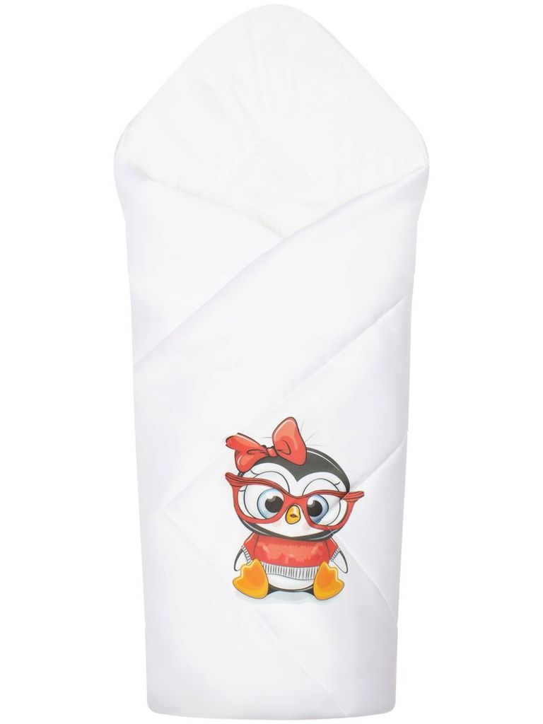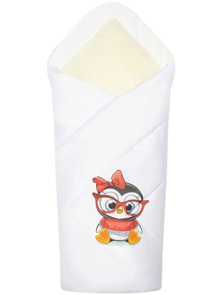 Зимний конверт-одеяло на выписку "Пингвиночка в очках" (белое, принт без кружева) без пледаВопросы по товару