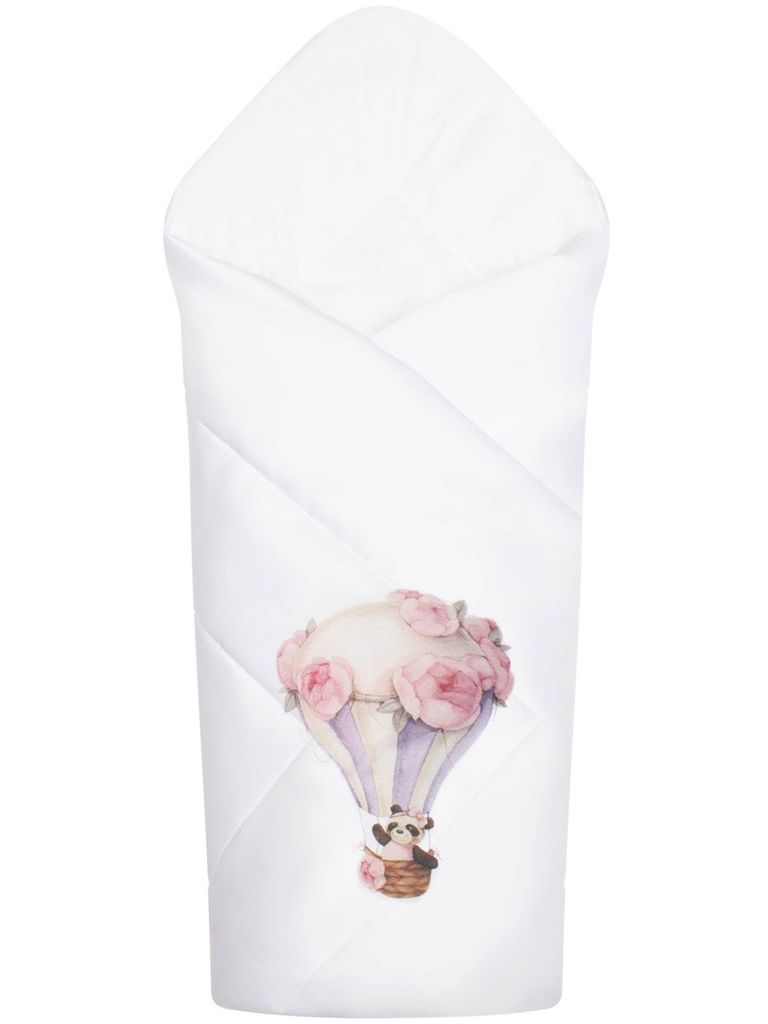 Зимний конверт-одеяло на выписку "Панда на воздушном шаре" (белое, принт без кружева) без пледаВопросы по товару