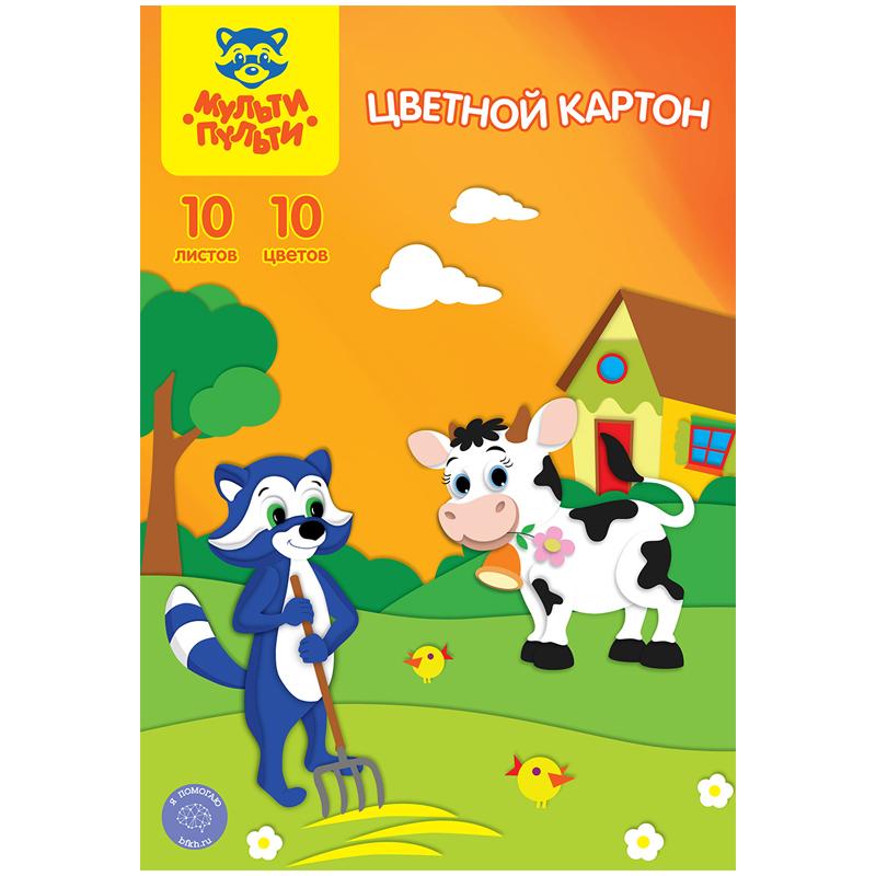 Картон цветной A4, Мульти-Пульти, 10 л., 10 цв., немелованный, в папке, КЦнм10-10_13976