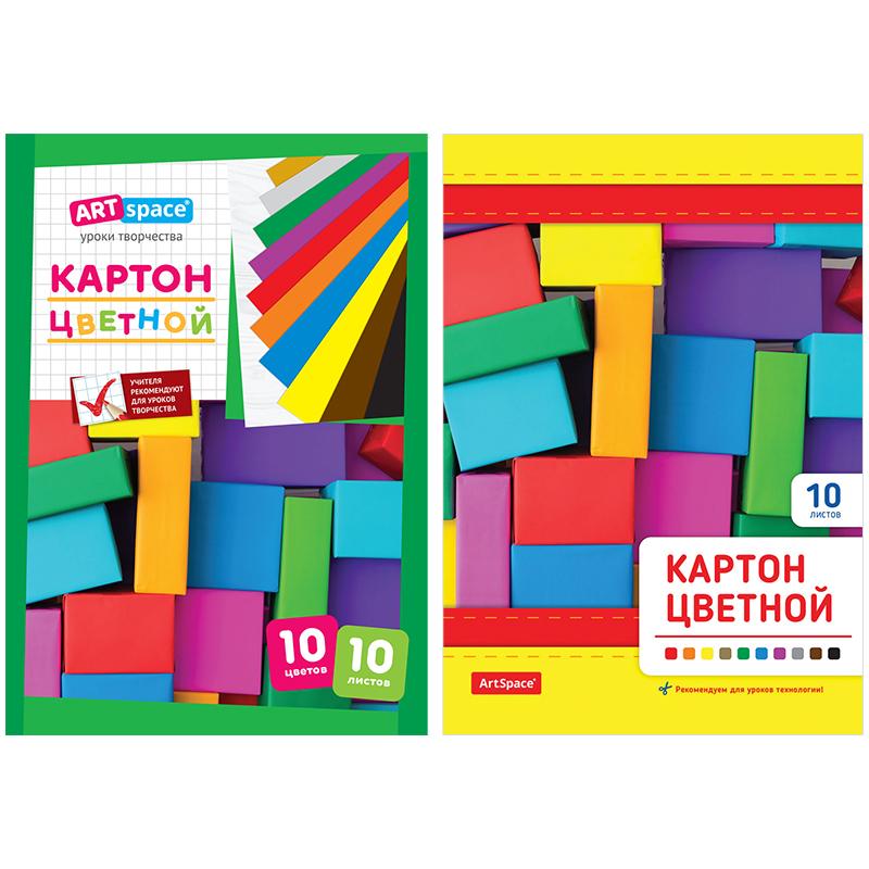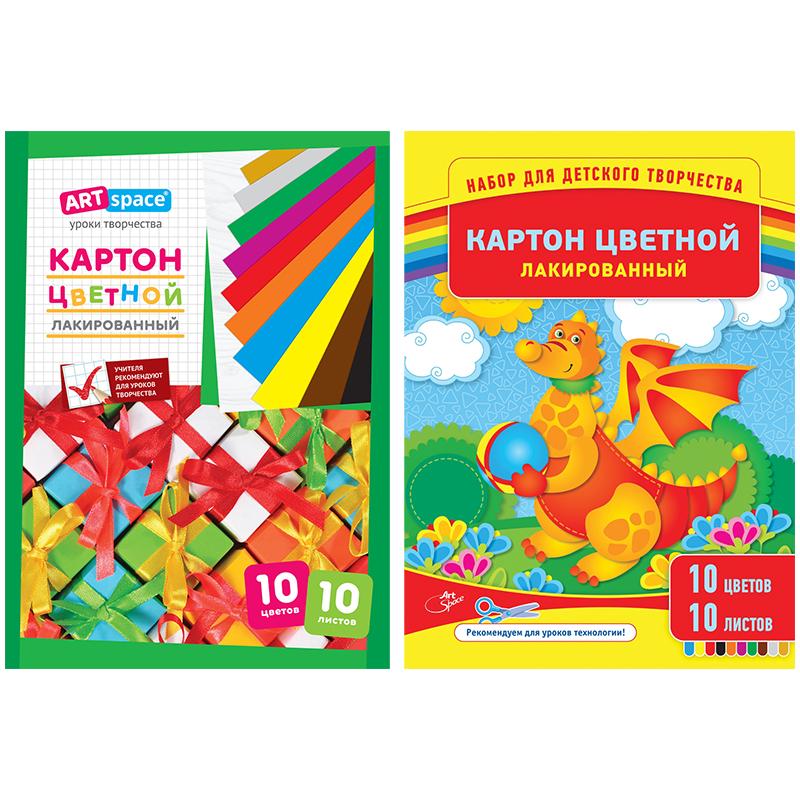 Картон цветной A4, ArtSpace, 10 л., 10 цв., лакированный, в папке, Нкл10-10_6103 (1) Вопросы по товару