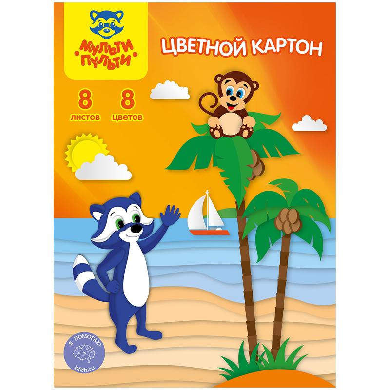 Картон цветной A5, Мульти-Пульти, 8 л., 8 цв., немелованный, в папке, КЦнм8-8А5_13977 (1) Вопросы по товару