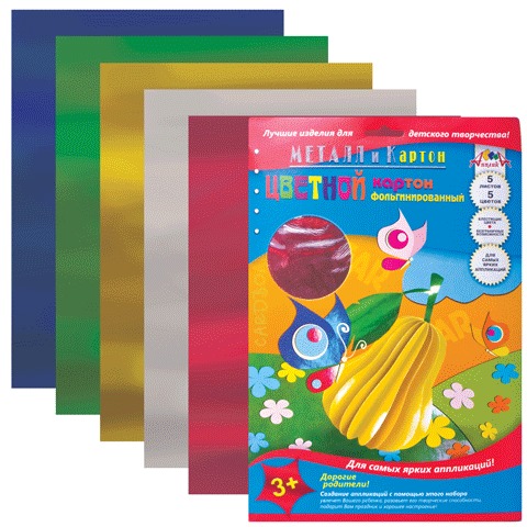 Картон цветной А4 205*290мм ФОЛЬГИНИРОВАННЫЙ, 5л., 5цв., С0238 Вопросы по товару