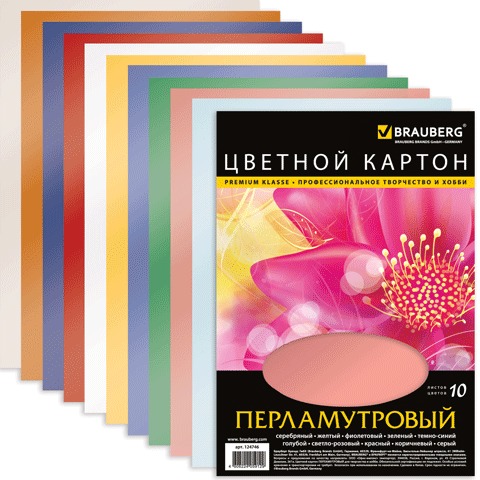 Картон цветной А4, 210*297мм, 10л., 10цв., перламутровый, 124746 Вопросы по товару