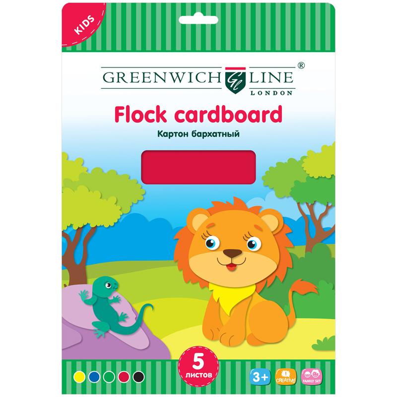 Картон бархатный A4, Greenwich Line, 5 л., 5 цв., в папке с европодвесом, Fc4-07690