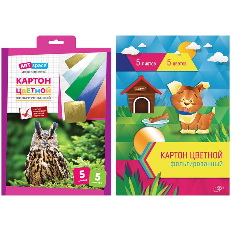 Картон цветной A4, ArtSpace, 5 л., 5 цв., фольгированный, в папке с европодвесом, Нк5-5фг_1807 Вопросы по товару