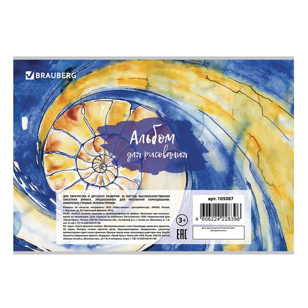 Альбом для рисования А4 48 л., гребень, обложка картон, BRAUBERG ЭКО, 205х290 мм, Живопись (2 вида), 105108 Вопросы по товару