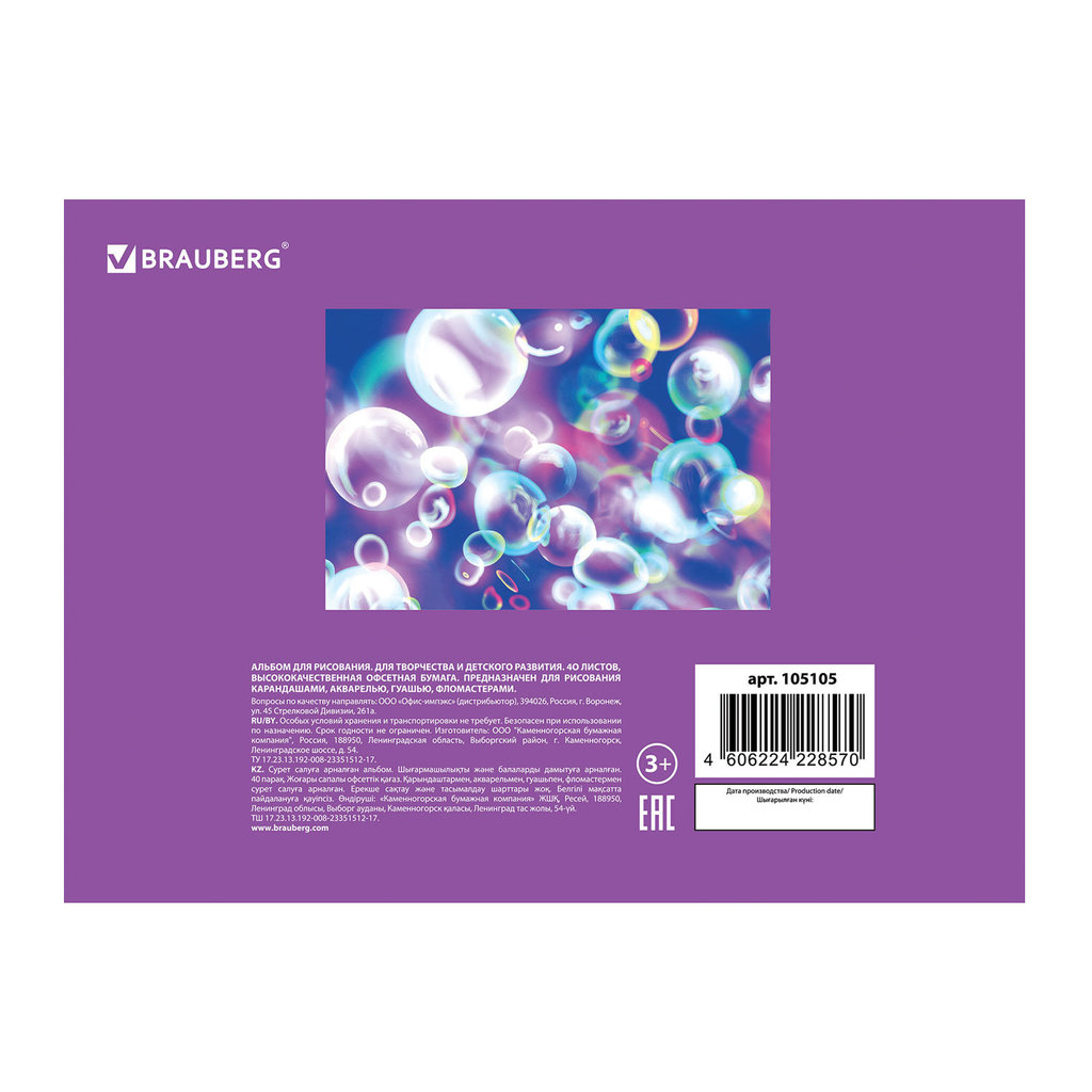 Альбом для рисования А4 48 л., гребень, обложка картон, BRAUBERG ЭКО, 205х290 мм, Лаванда (2 вида), 105109 (1) Вопросы по товару