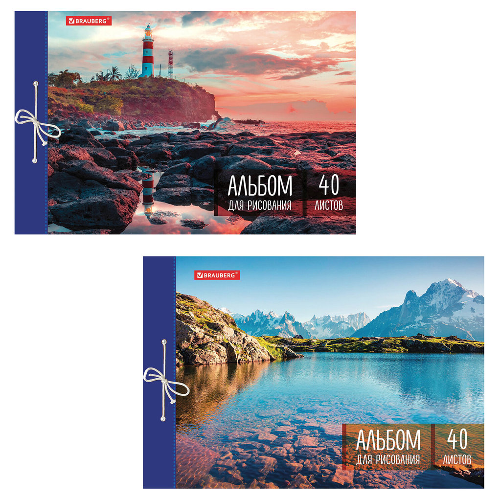 Альбом для рисования А4 40 л., на завязках, обложка картон, BRAUBERG, 200х285 мм, "Морская" (2 вида), 105614Альбом для рисования А4 40 л., на завязках, обложка картон, BRAUBERG, 200х285 мм, "Морская" (2 вида), 105614