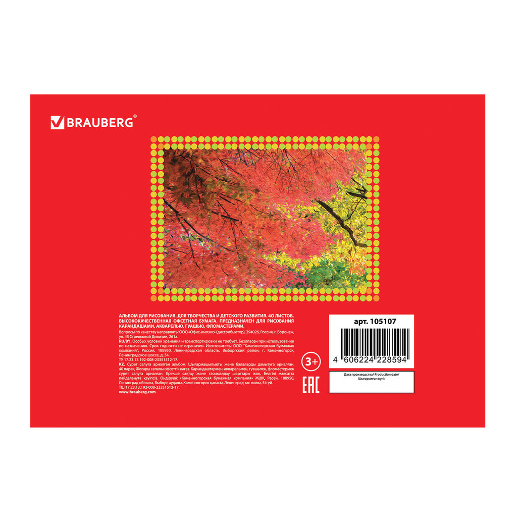 Альбом для рисования А4 40 л., скоба, обложка картон, BRAUBERG, 200х283 мм, Родные просторы (2 вида), 103729Альбом для рисования А4 40 л., скоба, обложка картон, BRAUBERG, 200х283 мм, Родные просторы (2 вида), 103729