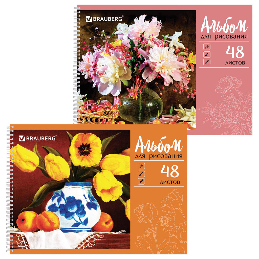 Альбом для рисования А4 40 л., скоба, обложка картон, BRAUBERG, 200х283 мм, Цветы (2 вида), 102851Альбом для рисования А4 40 л., скоба, обложка картон, BRAUBERG, 200х283 мм, Цветы (2 вида), 102851