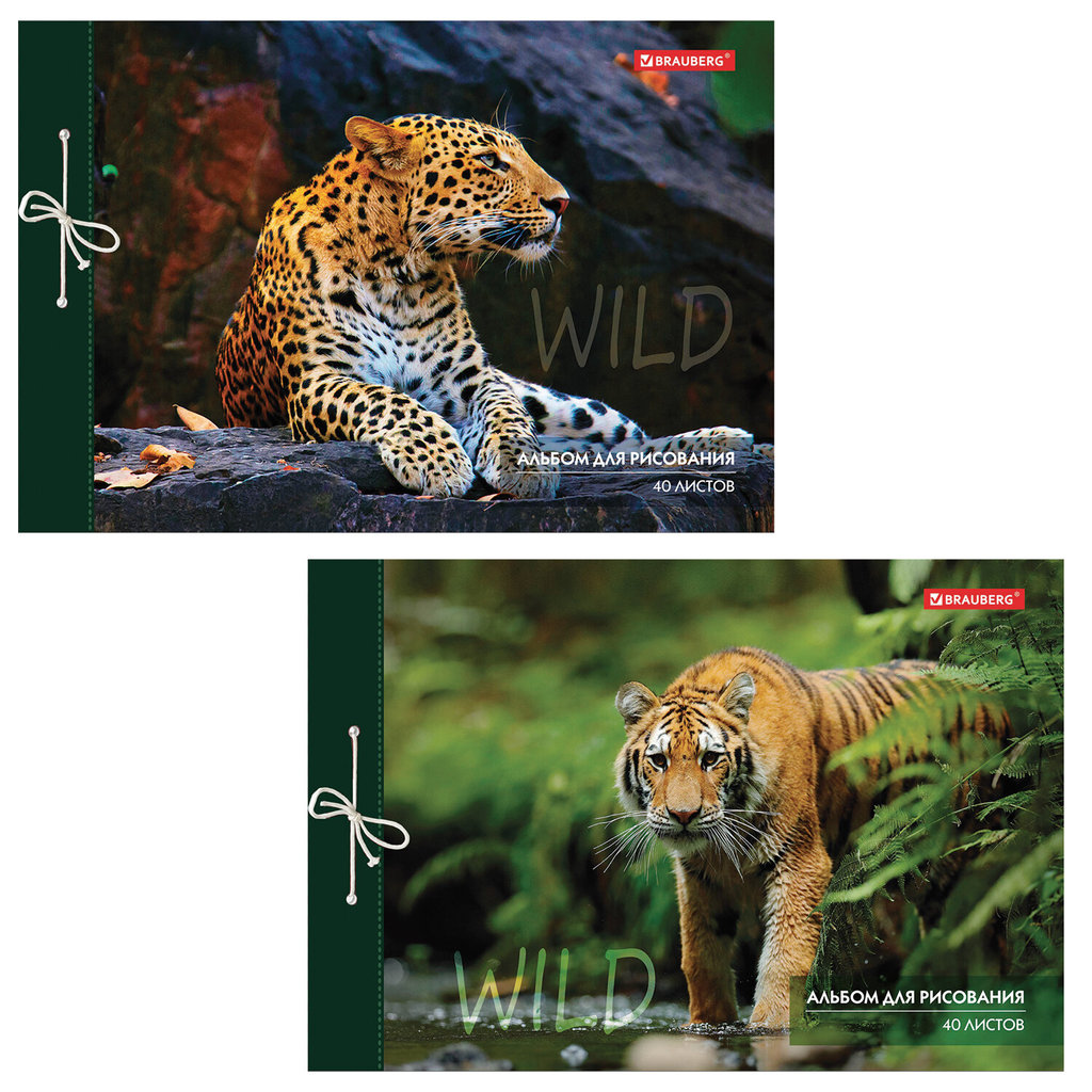 Альбом для рисования А4 40 л., на завязках, обложка картон, BRAUBERG, 200х285 мм, "Дикие кошки" (2 вида), 105615Альбом для рисования А4 40 л., на завязках, обложка картон, BRAUBERG, 200х285 мм, "Дикие кошки" (2 вида), 105615