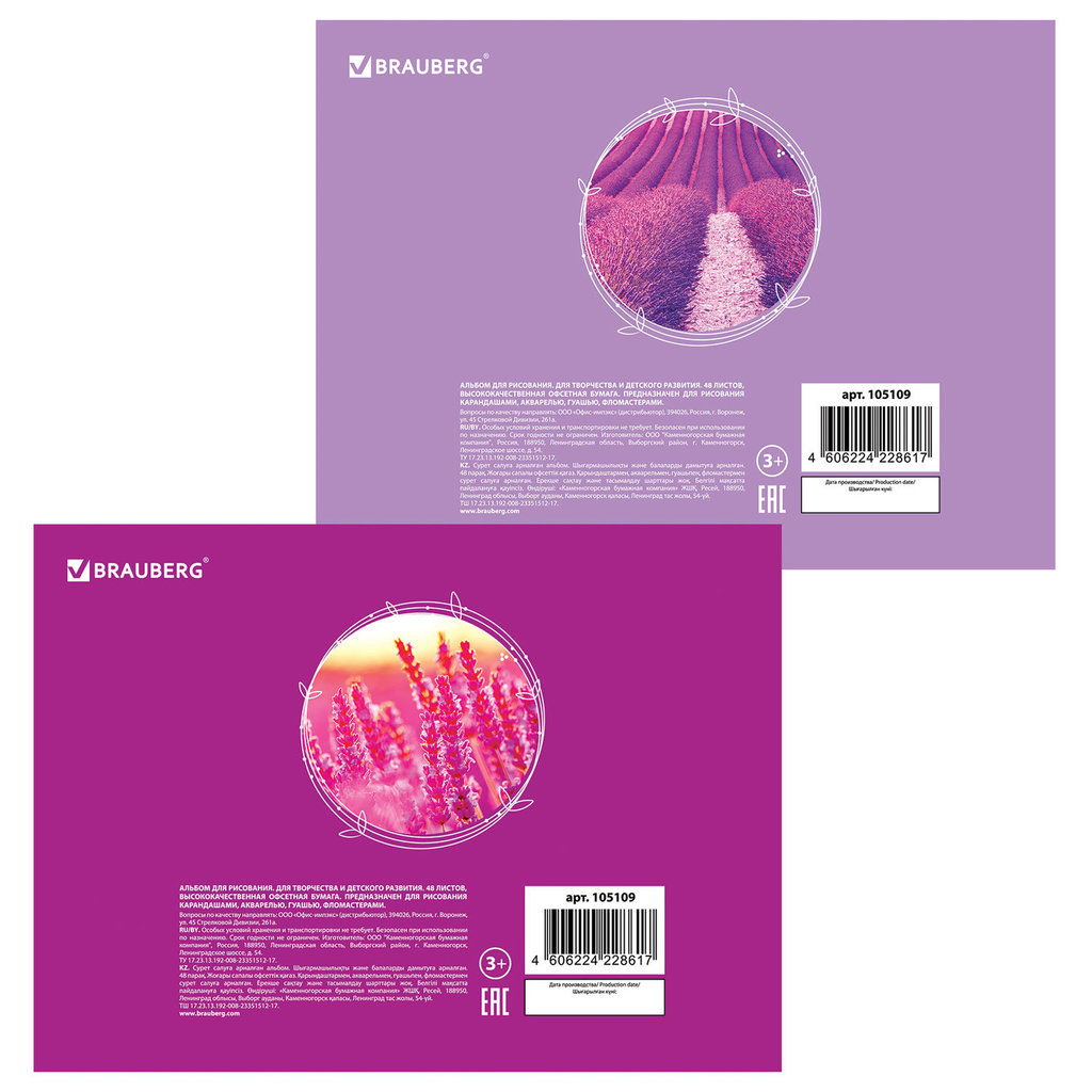 Альбом для рисования А4 48 л., гребень, обложка картон, BRAUBERG ЭКО, 205х290 мм, Лаванда (2 вида), 105109Альбом для рисования А4 48 л., гребень, обложка картон, BRAUBERG ЭКО, 205х290 мм, Лаванда (2 вида), 105109Альбом для рисования А4 48 л., гребень, обложка картон, BRAUBERG ЭКО, 205х290 мм, Лаванда (2 вида), 105109