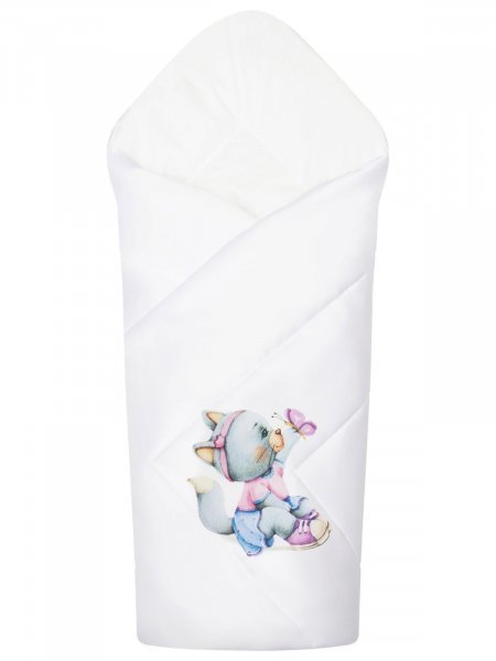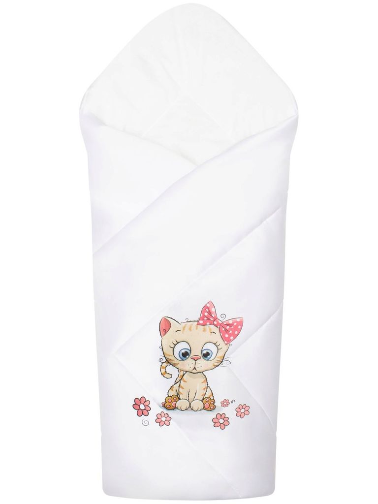 Летний конверт-одеяло на выписку "Киска" (белое, принт без кружева)Вопросы по товару