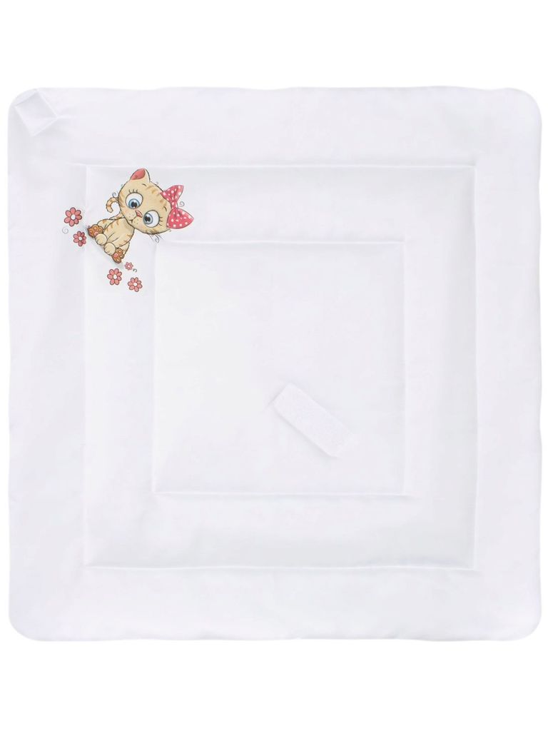 Летний конверт-одеяло на выписку "Киска-спортсменка" (белое, принт без кружева)Вопросы по товару
