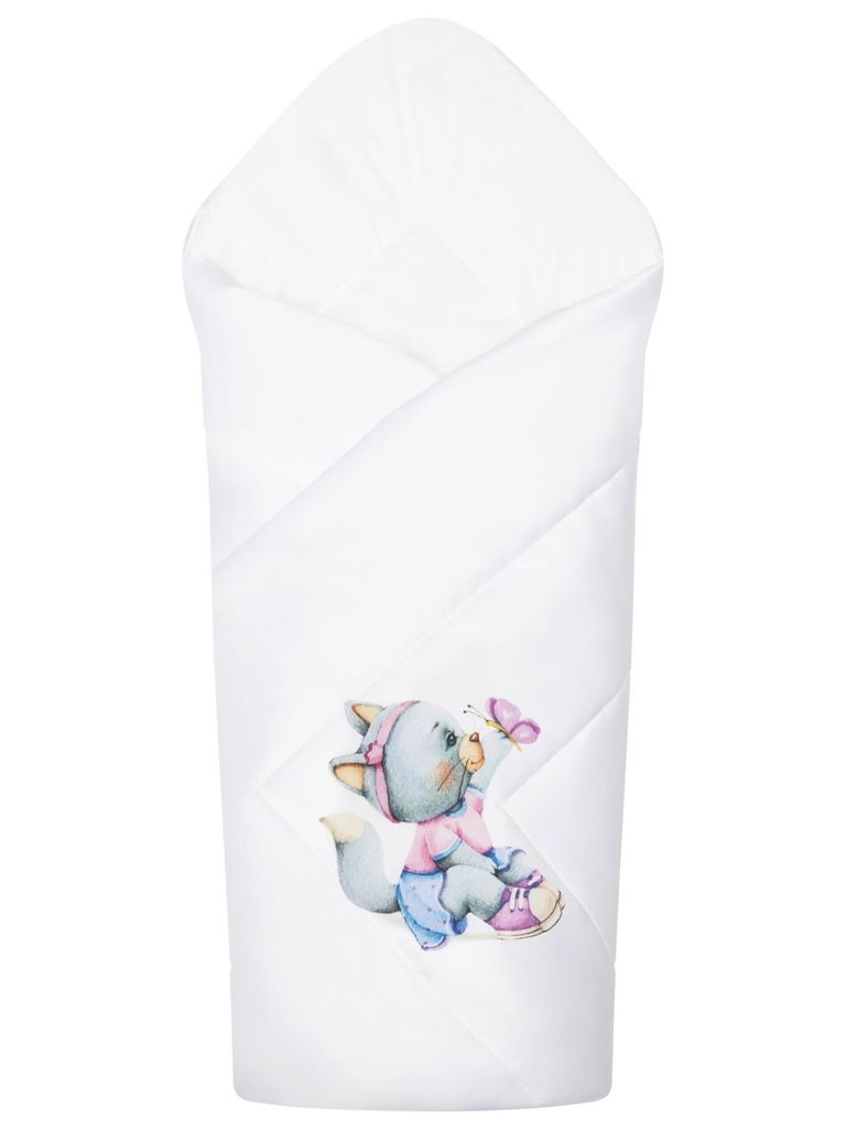 Летний конверт-одеяло на выписку "Киска с бабочкой" (белое, принт без кружева)Вопросы по товару