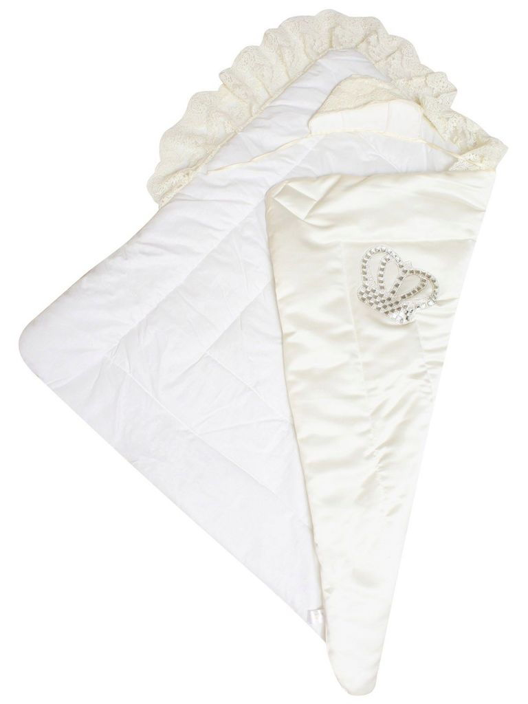 Летний конверт-одеяло на выписку "Империя" молочный с молочным кружевом и большой короной на липучкеВопросы по товару