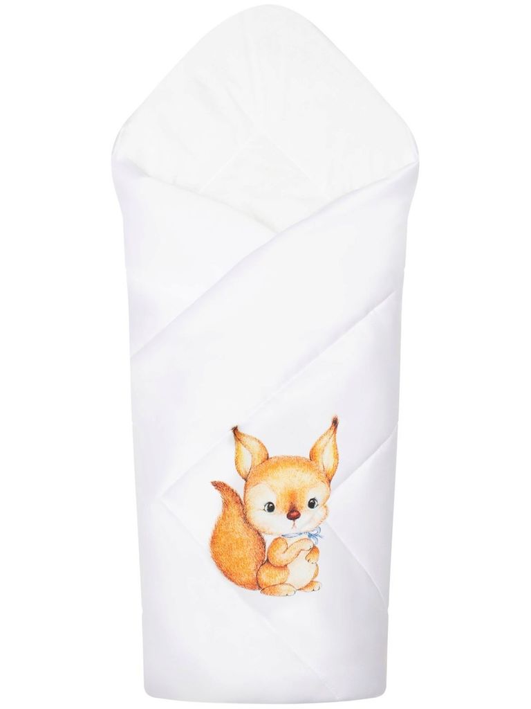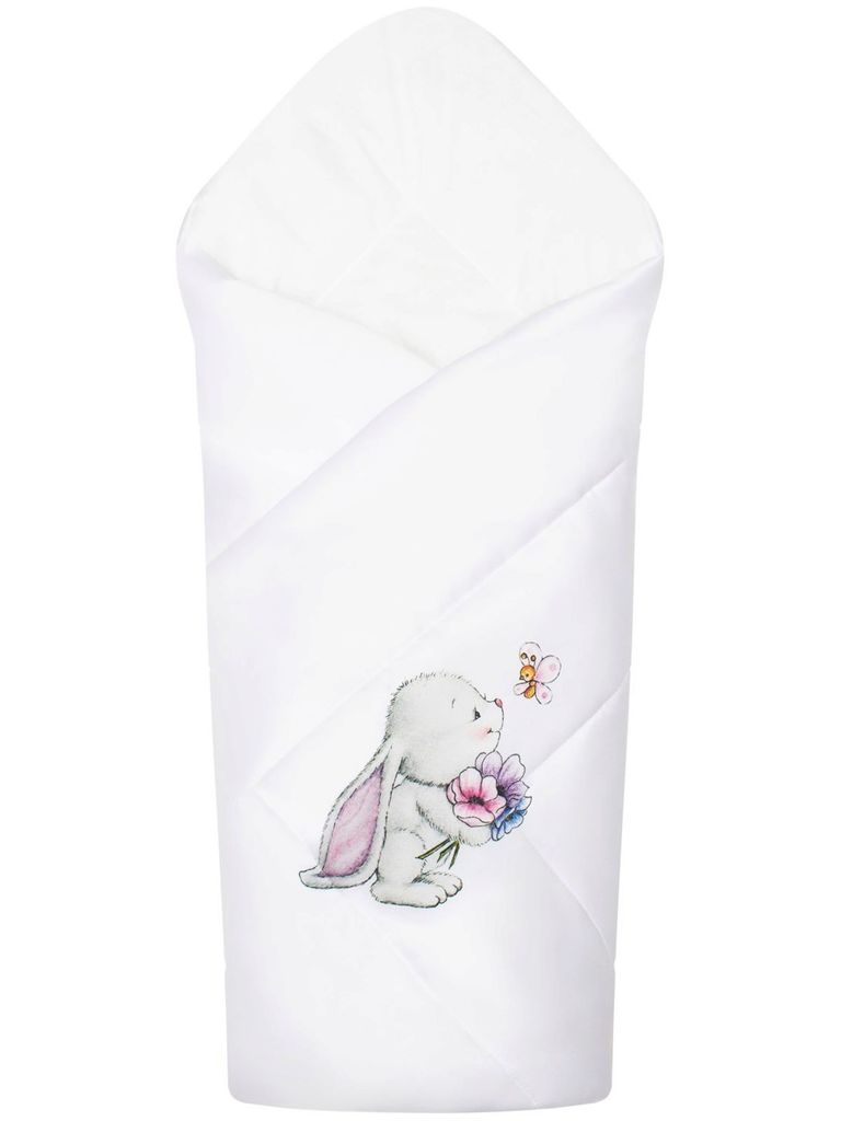 Летний конверт-одеяло на выписку "Зайчонок" (белое, принт без кружева)Вопросы по товару