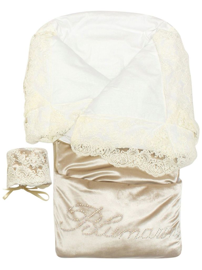 Летний конверт-одеяло на выписку "Блюмарим" (бежевый с молочным кружевом и стразами на молнии)Вопросы по товару