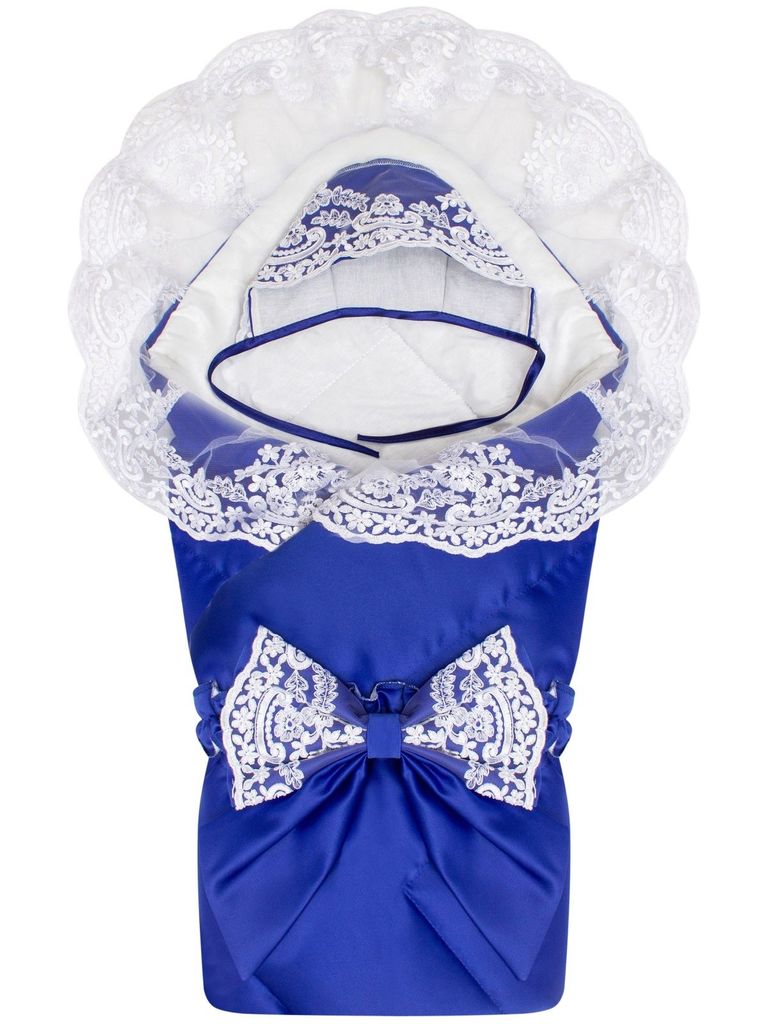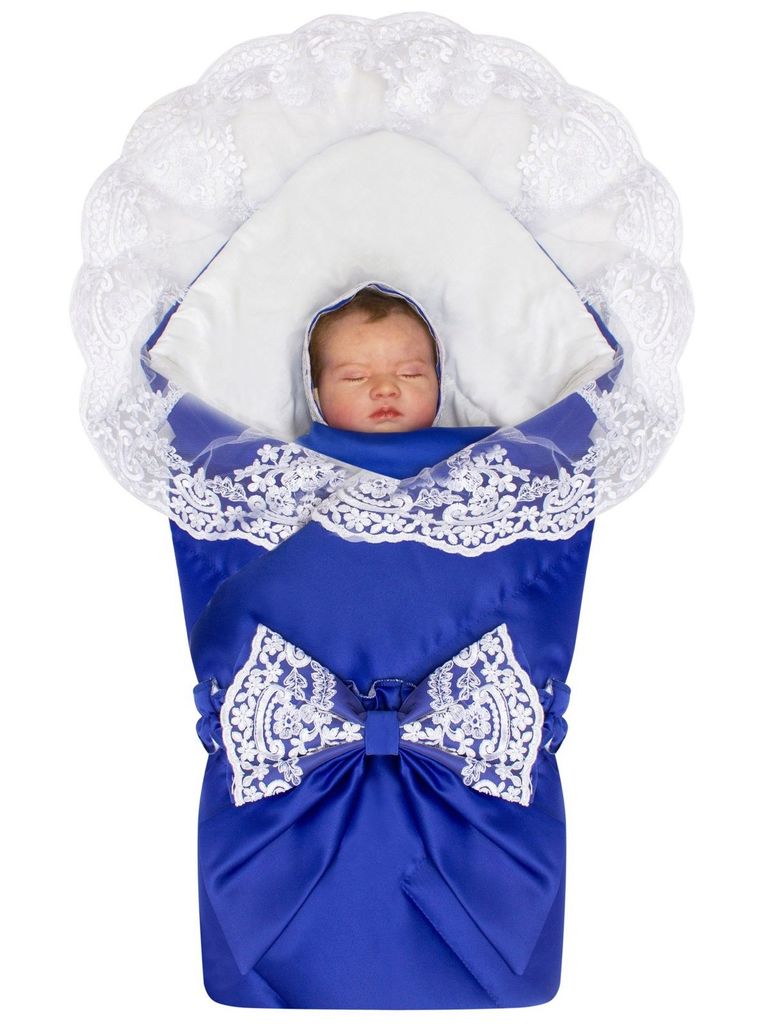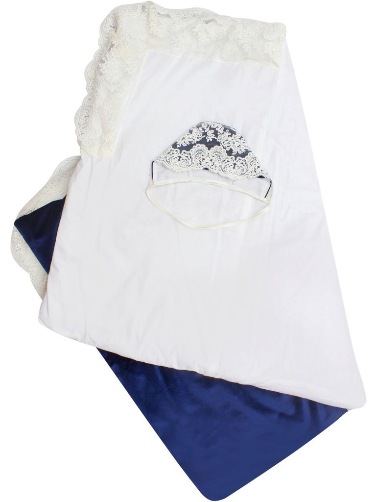 Летний конверт-одеяло на выписку "Венеция" (синий с белым кружевом)Вопросы по товару