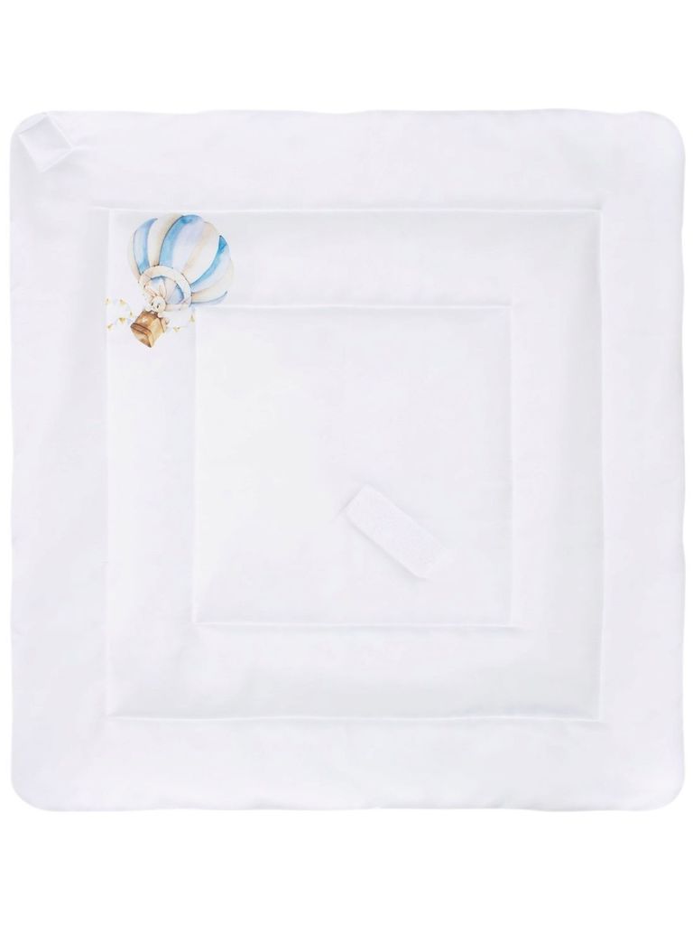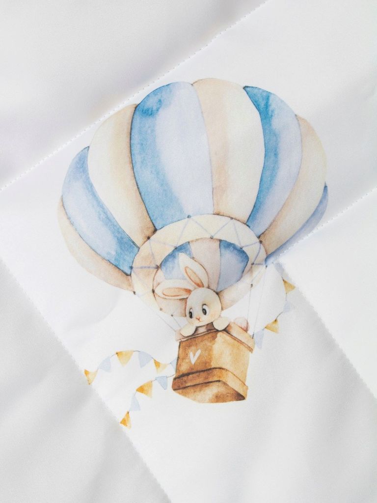 Летний конверт-одеяло на выписку "Зайка на воздушном шаре" (белое, принт без кружева)Вопросы по товару
