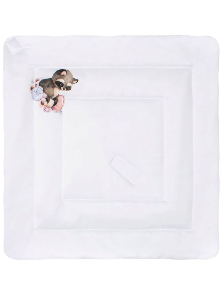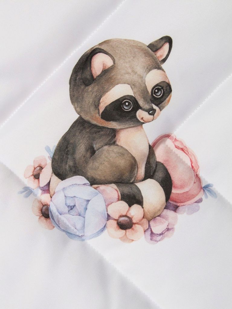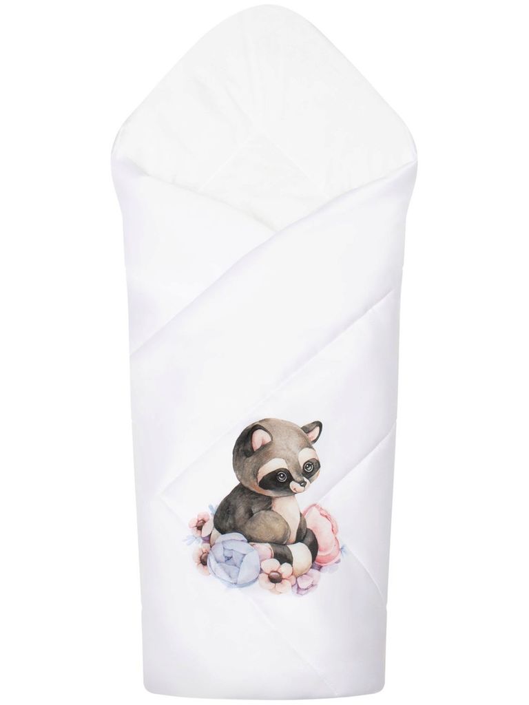 Летний конверт-одеяло на выписку "Енотик" (белое, принт без кружева)Вопросы по товару