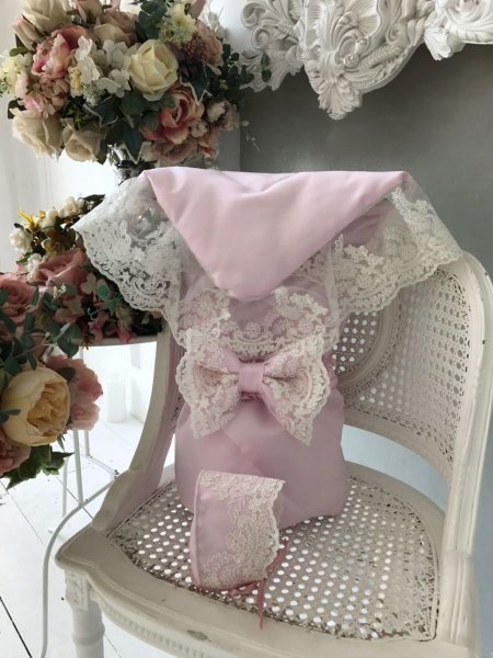 Летний конверт-одеяло на выписку "Венеция" (розовый с молочным кружевом)Вопросы по товару