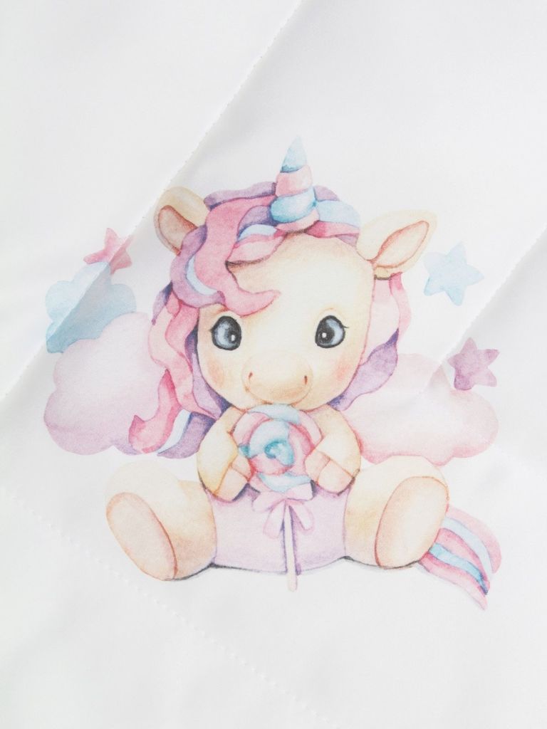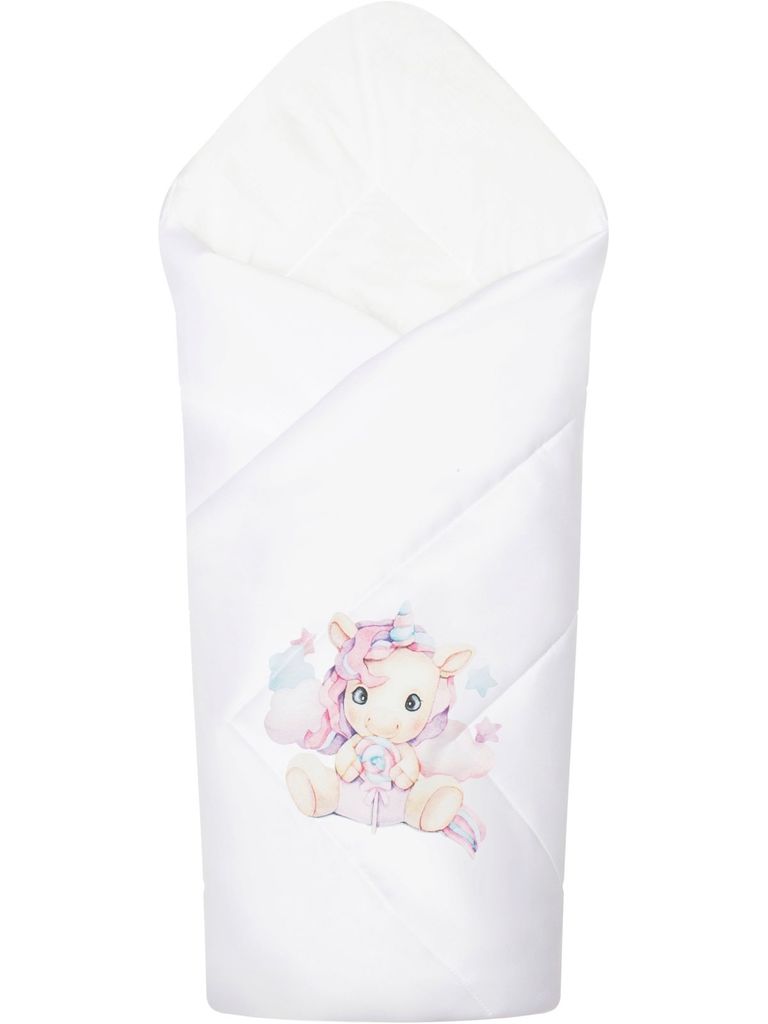 Летний конверт-одеяло на выписку "Единорожка" (белое, принт без кружева)Вопросы по товару