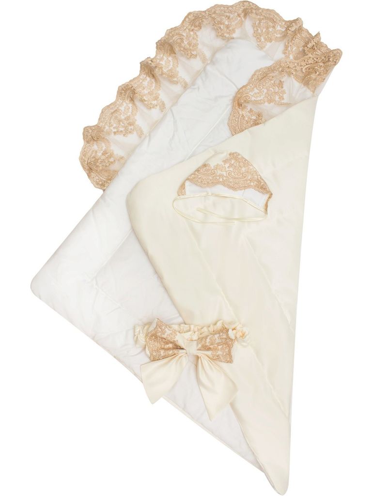 Летний конверт-одеяло на выписку "Венеция" (молочный с золотым кружевом)Вопросы по товару