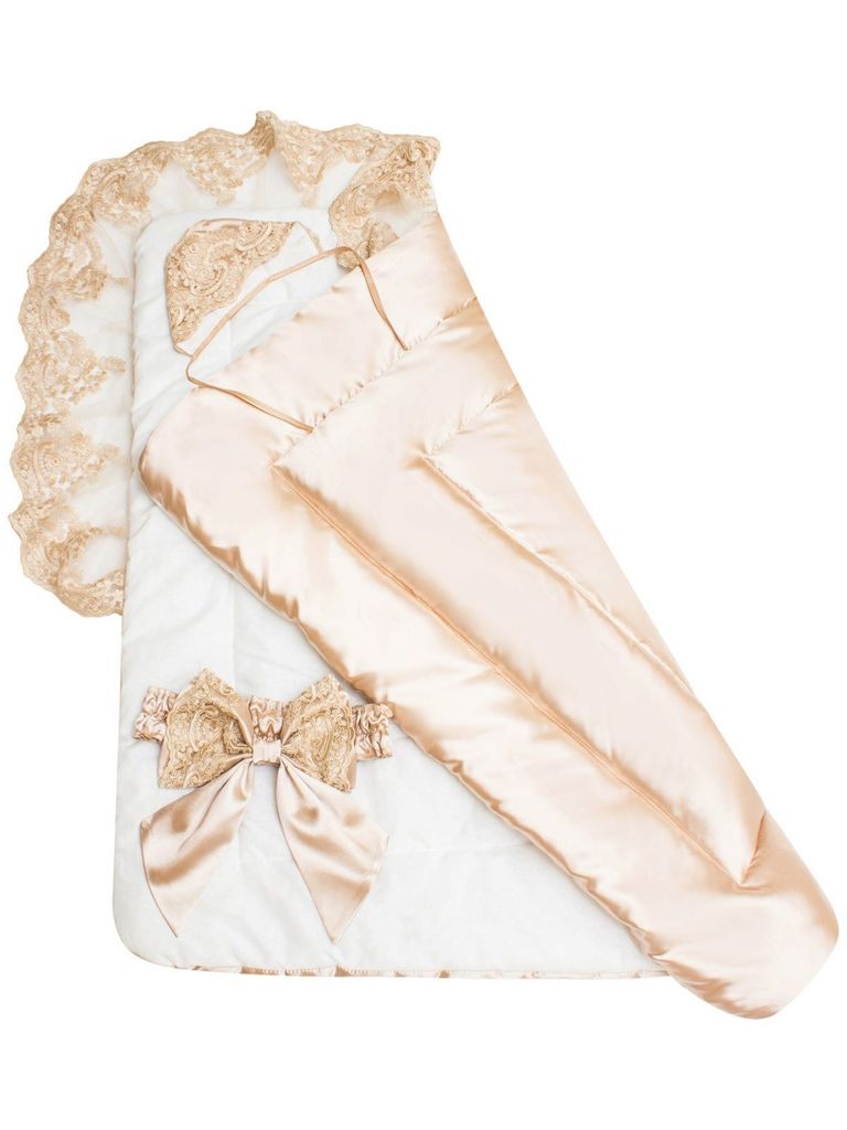 Летний конверт-одеяло на выписку "Венеция" атлас (золотой с золотым кружевом)Вопросы по товару
