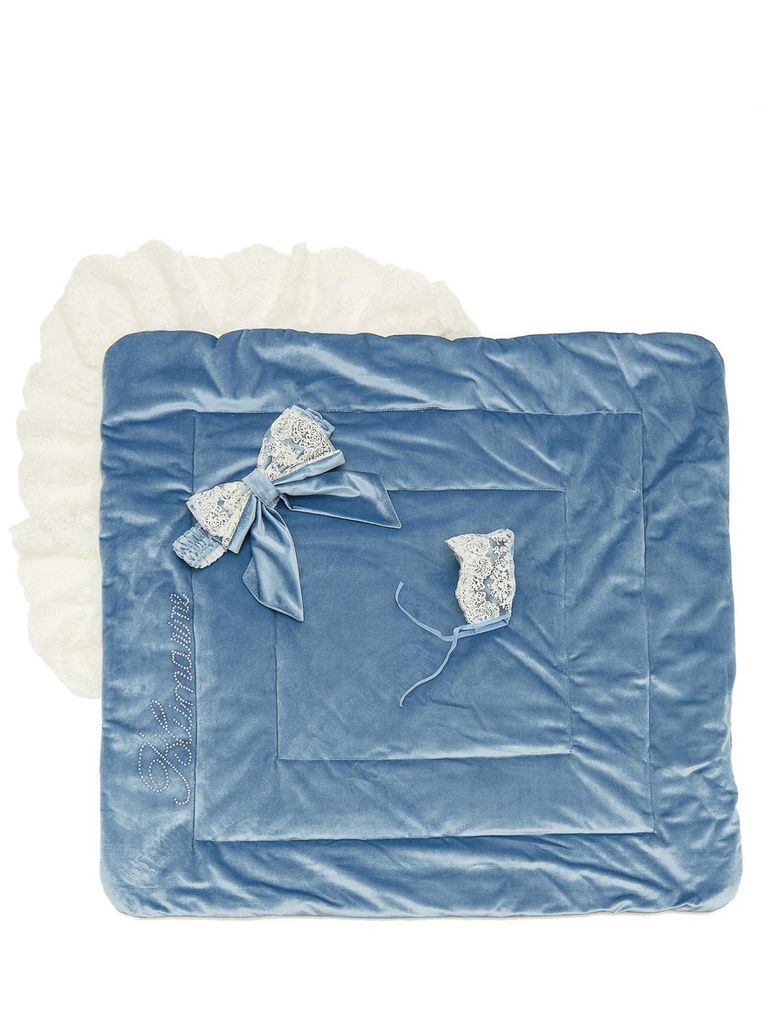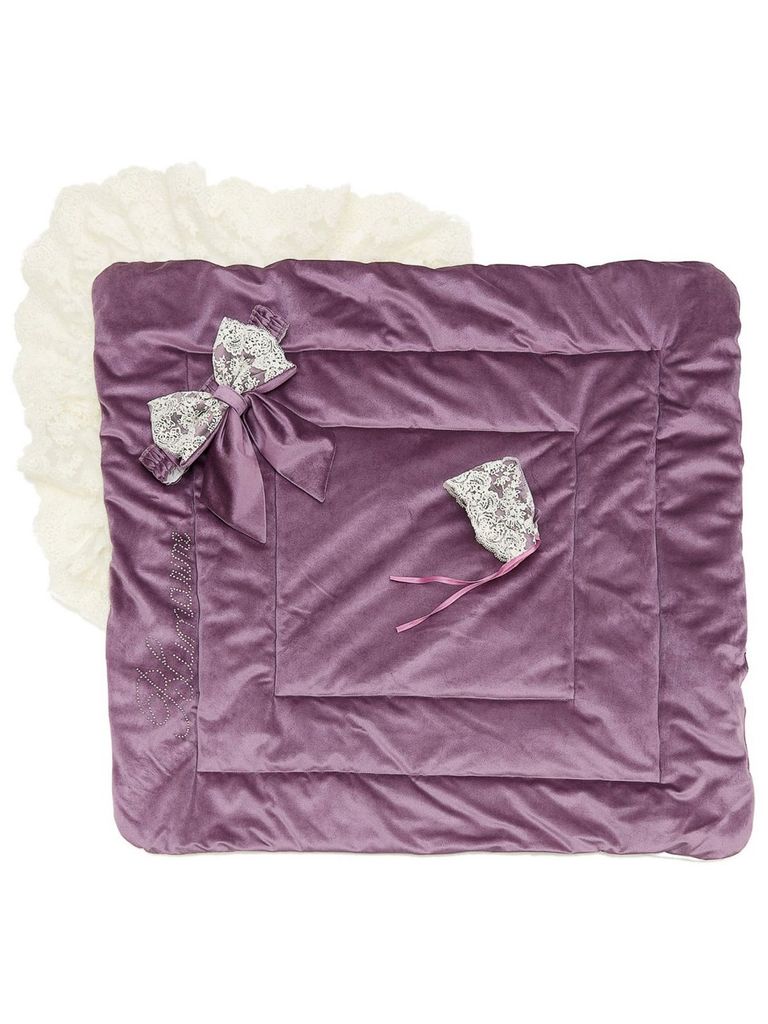 Летний конверт - одеяло для выписки из роддома Блюмарим имеет подклад из 100 % хлопка, верх - очень мягкий и качественный бархат, декор итальянское вязанное кружево и надпись из страз. Утеплитель, кот... Показать описаниеорый используется - премиум класса - бамбуковое волокно. Конверт одеяло - это вещь не на один раз, в дальнейшем им можно пользоваться в кроватке или коляске. В данной моделе плотность утеплителя 100 грамм на квадратный метр (лето), что обеспечивает комфортную выписку ребенка в летний период при температуре от +15 градусов по Цельсию, любая модель может быть изготовлена в любом сезоне. В комплект входит чепчик без утепления для фотосессии.