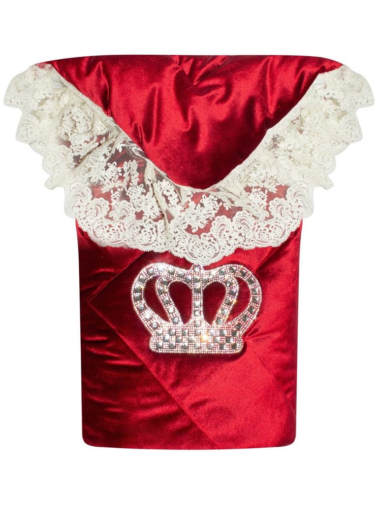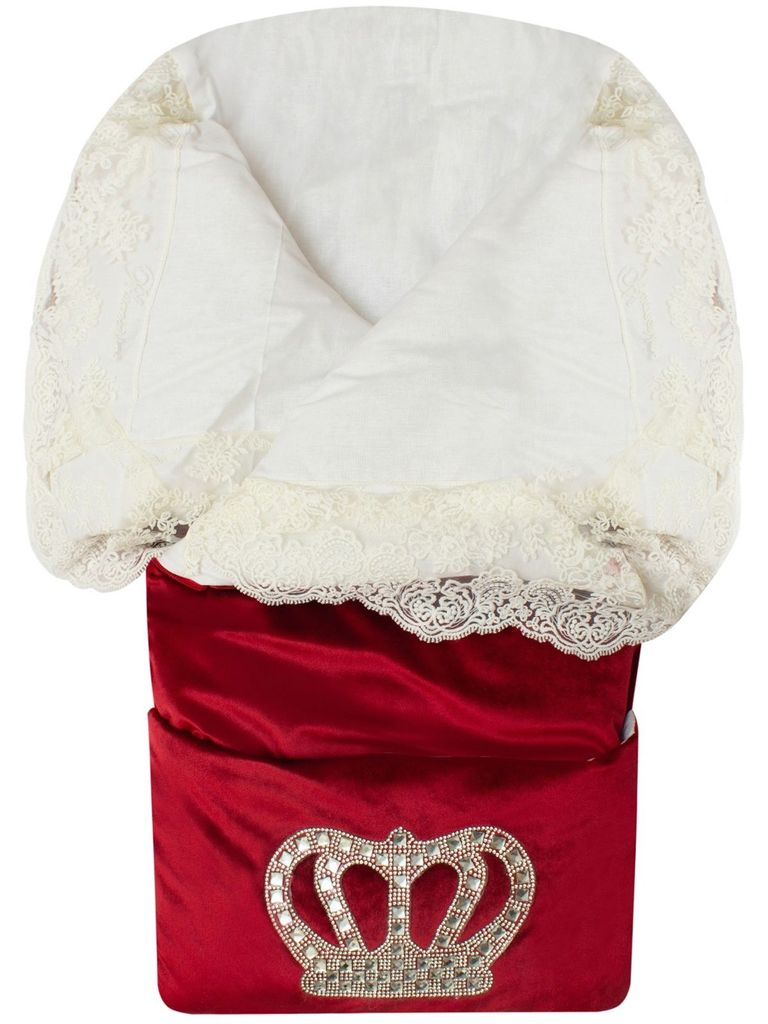 Летний конверт-одеяло на выписку "Императорский" (бургундия с молочным кружевом и большой короной на молнии)Вопросы по товару