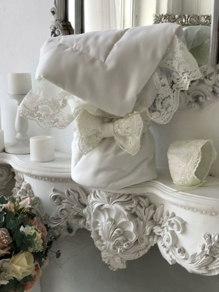 Летний конверт - одеяло для выписки из роддома Императорский имеет подклад из 100 % хлопка, верх - очень мягкий и качественный бархат, декор итальянское вязанное кружево и надпись из страз. Утеплитель... Показать описание, который используется - премиум класса - бамбуковое волокно. Конверт одеяло - это вещь не на один раз, в дальнейшем им можно пользоваться в кроватке или коляске. В данной моделе плотность утеплителя 100 грамм на квадратный метр (лето), что обеспечивает комфортную выписку ребенка в летний период при температуре от +15 градусов по Цельсию, любая модель может быть изготовлена в любом сезоне. В комплект входит бант на резинке и чепчик без утепления для фотосессии.