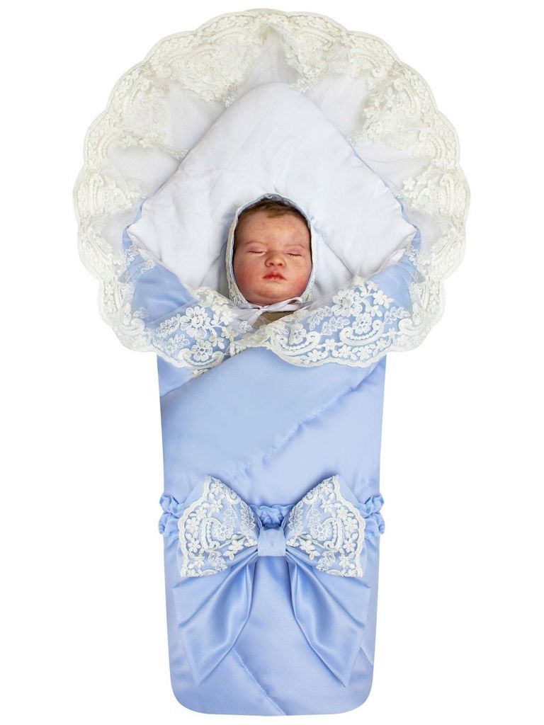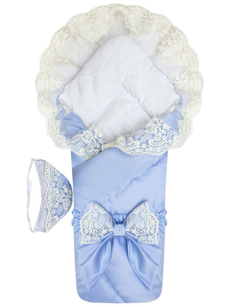 Летний конверт-одеяло на выписку "Венеция" (голубой с белым кружевом)Вопросы по товару