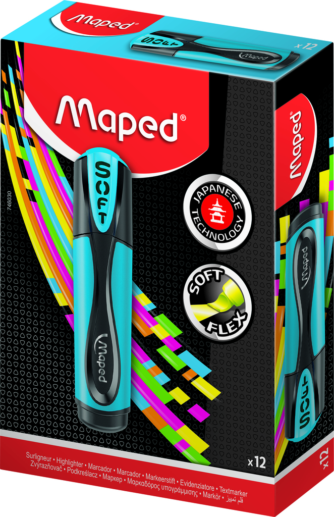 МАРКЕР-ТЕКСТОВЫД FLUO PEP'S ULTRA SOFT ГИБКИЙ НАКОНЕЧНИК, СИНИЙ, КОРОБКА