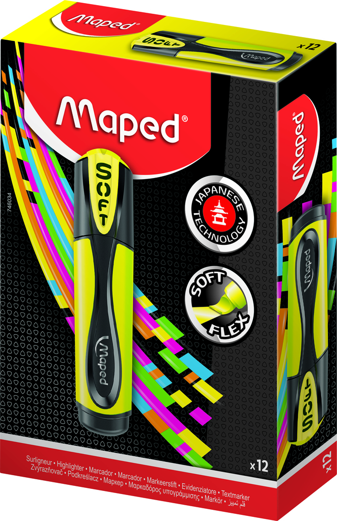 МАРКЕР-ТЕКСТОВЫД FLUO PEP'S ULTRA SOFT ГИБКИЙ НАКОНЕЧНИК, ЖЕЛТЫЙ, КОРОБКА