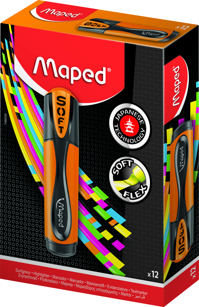 МАРКЕР-ТЕКСТОВЫД FLUO PEP'S ULTRA SOFT ГИБКИЙ НАКОНЕЧНИК, ОРАНЖЕВЫЙ, КОРОБКА
