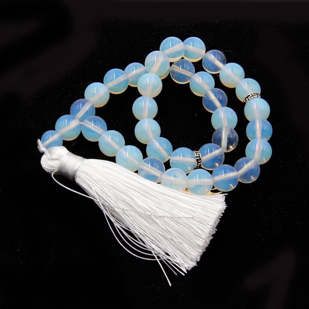 Четки - атрибут, который используют в медитации и молитве. Представляет собой нить или верёвку, на которую нанизаны бусины. Четки являются культовой принадлежностью, специальным ритуальным инструменто... Показать описанием, который используется для подсчета повторений молитв и для счёта мантр. Цвет бусин, тоже очень важен. Белые четки используются для лечения. Белый цвет – целительный. Он обладает умиротворяющим действием. Белые четки применяются в практиках мирных божеств, а также для очищения, избавления от болезней и для устранения препятствий. Простое перебирание четок позволяет привести в порядок нервную систему, избавиться от бессонницы, депрессии, снять тревожность развить чувствительность и точность движений пальцев при перебирании четок лучше усваивается информация в качестве лечебного массажа пальцев рук активизирует точки, связанные с различными органами и системами организма. В современном обществе чётки приобрели ещё одну функцию - функцию модного аксессуара. Чётки стало модно носить намотанными на запястье руки, или даже на шее, как бусы. Чётки теперь также и атрибут этно стиля. Выберете среди всего многообразия вариаций и свои чётки.