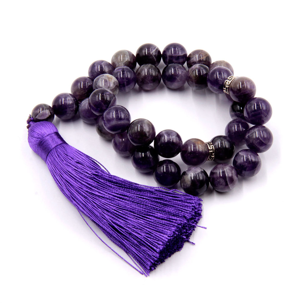 Четки - атрибут, который используют в медитации и молитве. Представляет собой нить или верёвку, на которую нанизаны бусины. Четки являются культовой принадлежностью, специальным ритуальным инструменто... Показать описанием, который используется для подсчета повторений молитв и для счёта мантр. Цвет бусин, тоже очень важен. Четки глубокого фиолетового цвета обладают сильными лечебными свойствами. Фиолетовый цвет повышает энергию, поэтому малу фиолетового цвета используют при чтении мантр, предназначенных для развития или увеличения энергии духа, для расширения осознанности. Простое перебирание четок позволяет привести в порядок нервную систему, избавиться от бессонницы, депрессии, снять тревожность развить чувствительность и точность движений пальцев при перебирании четок лучше усваивается информация в качестве лечебного массажа пальцев рук активизирует точки, связанные с различными органами и системами организма. В современном обществе чётки приобрели ещё одну функцию - функцию модного аксессуара. Чётки стало модно носить намотанными на запястье руки, или даже на шее, как бусы. Чётки теперь также и атрибут этно стиля. Выберете среди всего многообразия вариаций и свои чётки.